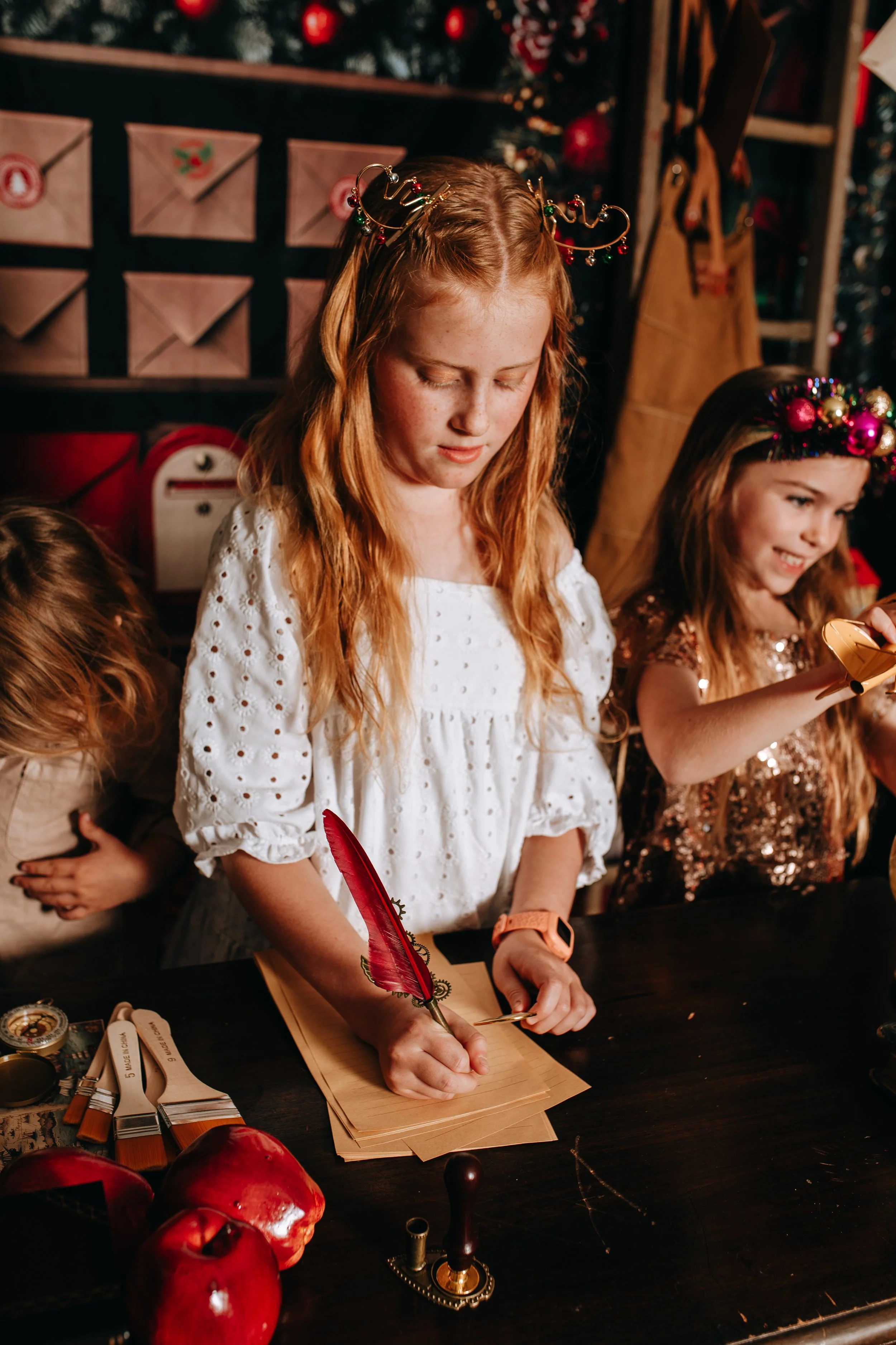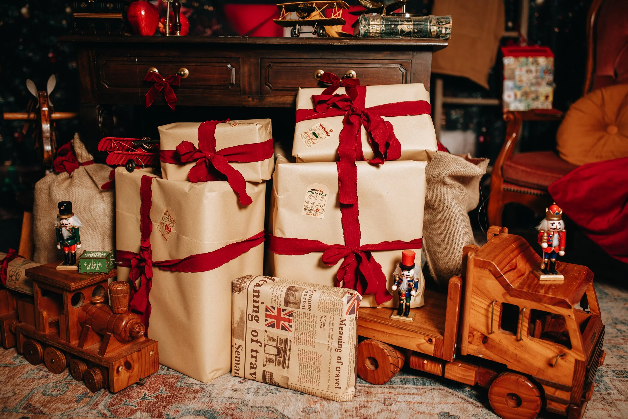 A cosy, festive space where little ones can try their hand at writing a letter to Santa with an old-fashioned quill, play with vintage wooden toys, and even post their letters straight into Santa’s mailbox. It’s warm, whimsical, and full of those small, nostalgic touches that bring Christmas magic to life.